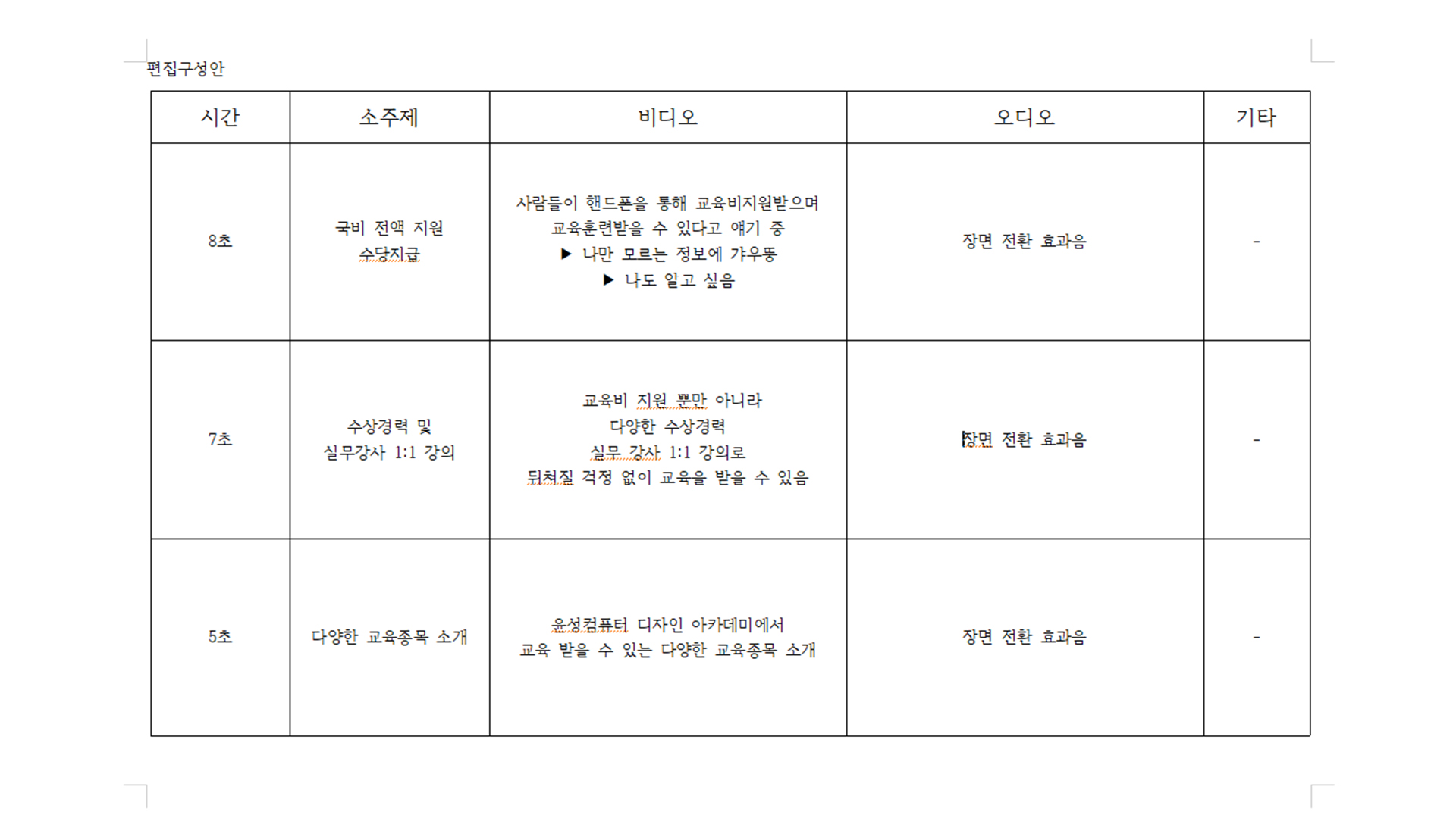 사이니지 광고 영상이기에 소리가 들리지 않아도 한눈에 알아볼수 있도록 자막등에 신경써서 작업을 진행함